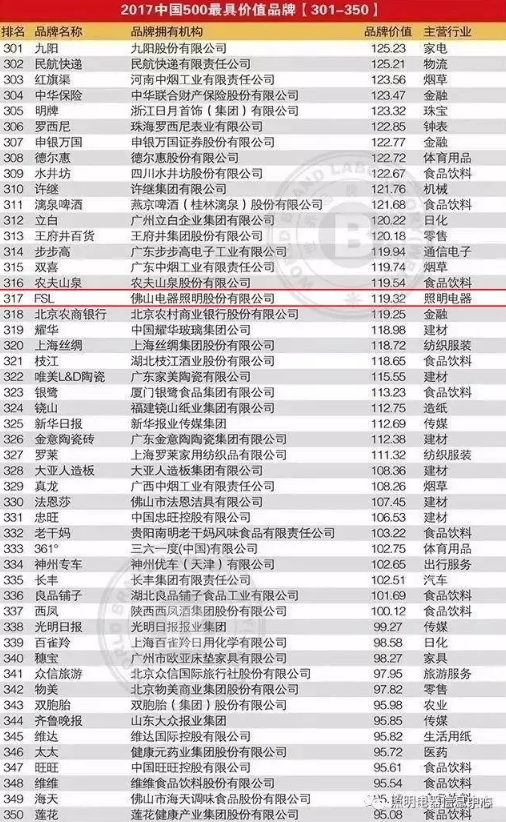 6月22日,由世界品牌实验室主办的第十四届“世界品牌大会”在北京举行,会上发布了2017年《中国500具价值品牌》分析报告。在这份基于财务数据、品牌强度和消费者行为分析的年度报告中,龙8国际-long8唯一官网作为照明行业优秀上市公司,入选2017年“中国500具价值品牌”榜单,以119.32亿元的品牌价值,在照明电器行业入选的品牌中名列第三,在总榜单位列第317名,品牌价值比去年增长了22.73%。