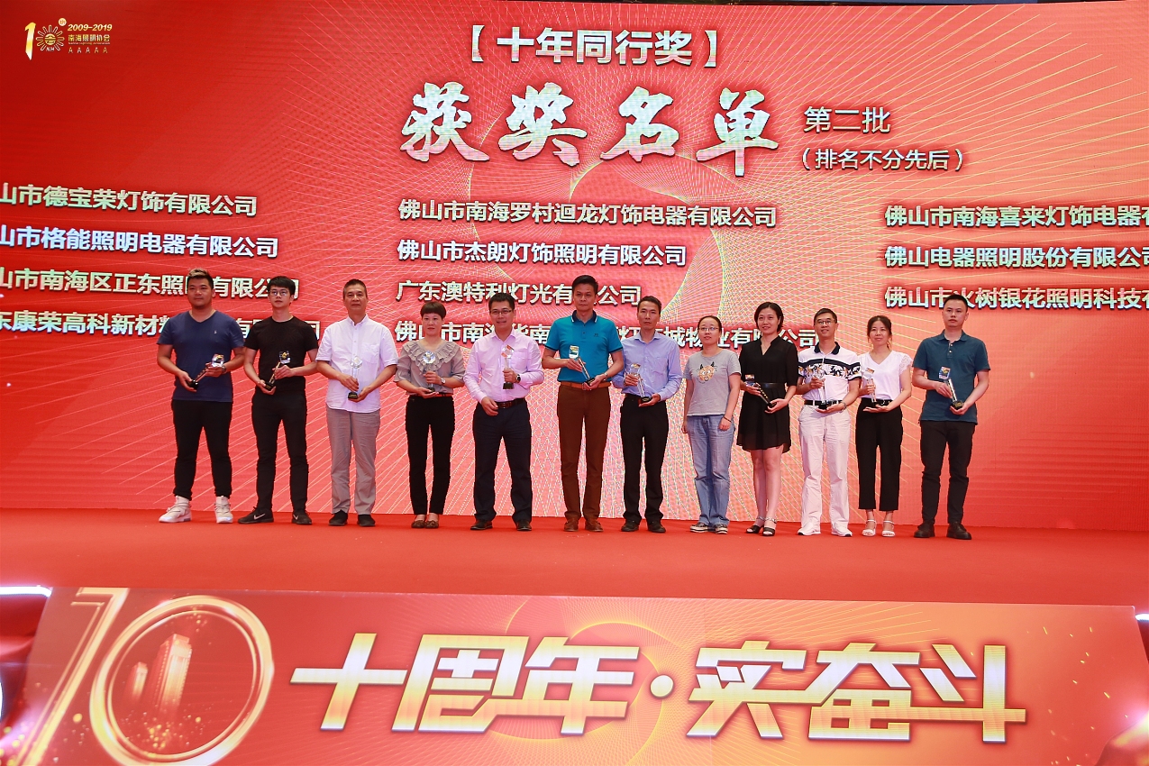 5月21日,由南海照明协会主办的“十周年·实奋斗”南海照明协会10周年庆典暨峥嵘十载颁奖典礼在佛山举行,龙8国际-long8唯一官网电商渠道总监、佛照电工副总经理陈文基及各专家学者、企业代表近200人参与出席本次盛会。