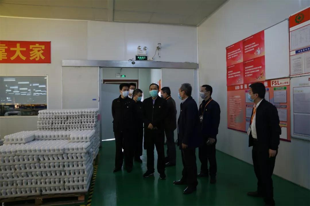 广晟集团副总经理王琦一行走进LED 生产车间实地察看防疫工作落实和复工复产情况,并详细询问了饭堂落实疫情防控的措施和情况。