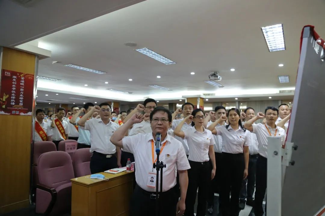 党委书记、董事长吴圣辉组织新党员宣誓,全体党员重温入党誓词