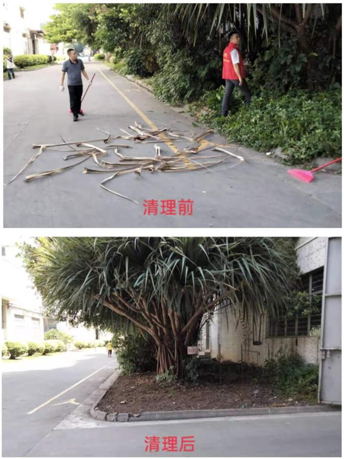 炎炎夏日,蚊虫增多,员工在休息区及洗手间经常被蚊虫叮咬,清理车间周边环境卫生刻不容缓。生产运营第二党支部党员和入党积极分子拿起工具就开始干,有的拔杂草,有的清理垃圾,有的清理枯枝,有的打扫清理职工活动中心,大家合理分工相互配合,一派热火朝天的场景。没一会儿功夫,大家都已汗流浃背,衣服被汗水浸透了。清理出来的杂草枯枝等垃圾堆积成了一座“小山丘”,职工活动中心打扫得一尘不染。路过的员工纷纷竖起大拇指,发出“打扫得好干净呀!”的感慨。党员们虽然又累又热,但是看到劳动成果和大家的好评,心里有了莫大的欣慰。