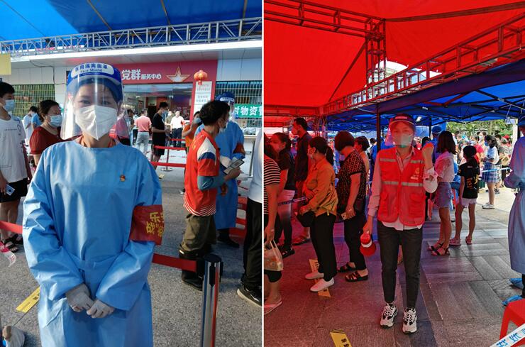 在此次大规模核酸检测中,同安居委会负责的东方广场作为辖区总人数最多的采集点,时间紧、任务重、风险高。党员突击队员们做好自身的防护措施后,一大早便来到东方广场中庭,按照社区人员的指挥,帮忙搭建临时帐篷,拉好隔离线,设置等候区间、缓冲区间和工作区间,摆放好塑料凳。当群众陆续到来后,党员志愿者勇当排队引导员、信息登记员、试管记录员,引导群众有序开展核酸检测,认真负责地提醒大家做好相关注意事项。