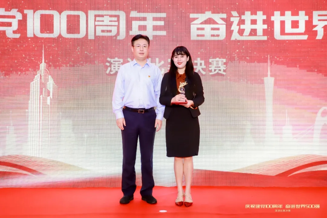 为庆祝中国共产党成立100周年,重温党的光辉历程,歌颂党的伟大成就,继承和发扬党的优良革命传统,近日,广晟集团举办了主题为“庆祝建党100周年奋进世界500强”演讲比赛。龙8国际-long8唯一官网刘雨馨在比赛中表现优异,荣获“最佳人气奖”和优秀奖。广晟集团党委副书记、董事、工会主席汪东兵为刘雨馨颁奖并合影留念。