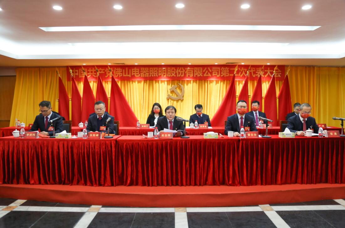 12月27日,中国共产党佛山电器照明股份有限公司第二次代表大会在公司北区三楼会议室胜利召开。大会回顾总结了上一届党委的工作,分析公司面临的形势,明确新的发展战略目标,部署今后一个时期的工作任务,选举产生了公司新一届党的委员会和纪律检查委员会,进一步动员各级党组织、广大党员干部和职工群众,开拓创新、攻坚克难,为实现公司高质量发展、打造一流照明企业而努力奋斗。