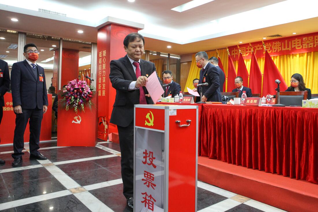 根据选举办法,经到会党员代表充分酝酿讨论,采取无记名投票方式和差额选举的办法,选举产生中国共产党佛山电器照明股份有限公司第二届委员会委员9名:吴圣辉、雷自合、张险峰、李经纬、张学权、张勇、魏彬、陈煜、汤琼兰;选举产生第二届纪律检查委员会委员5名:李经纬、谢认星、梁越斐、林庆、苏厚旭。