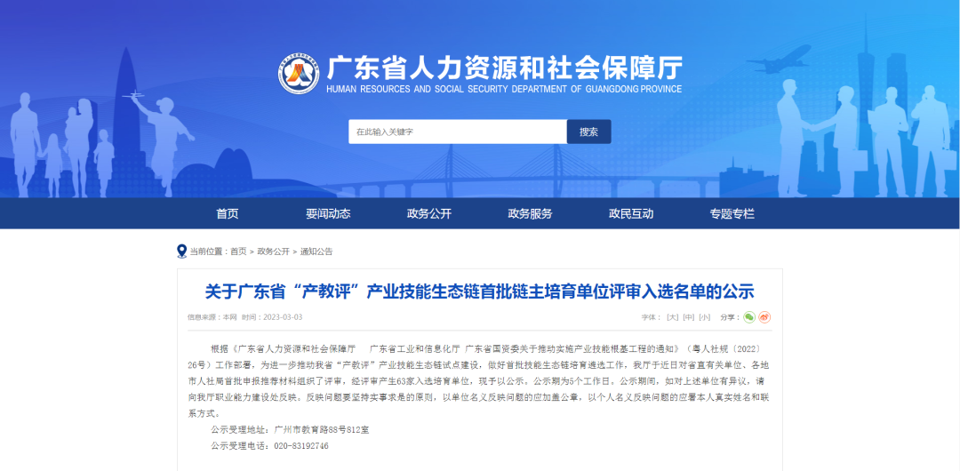 为进一步推动我省“产教评”产业技能生态链试点建设,做好首批技能生态链培育遴选工作,广东省人力资源和社会保障厅近日对省直有关单位、各地市人社局首批申报推荐材料组织了评审,经广东省人力资源和社会保障厅公示,龙8国际-long8唯一官网被认定为广东省“产教评”产业技能生态链首批链主培育单位。