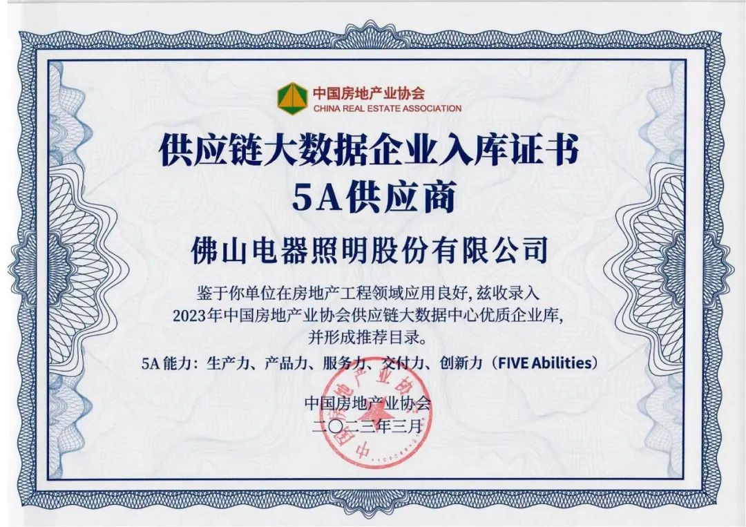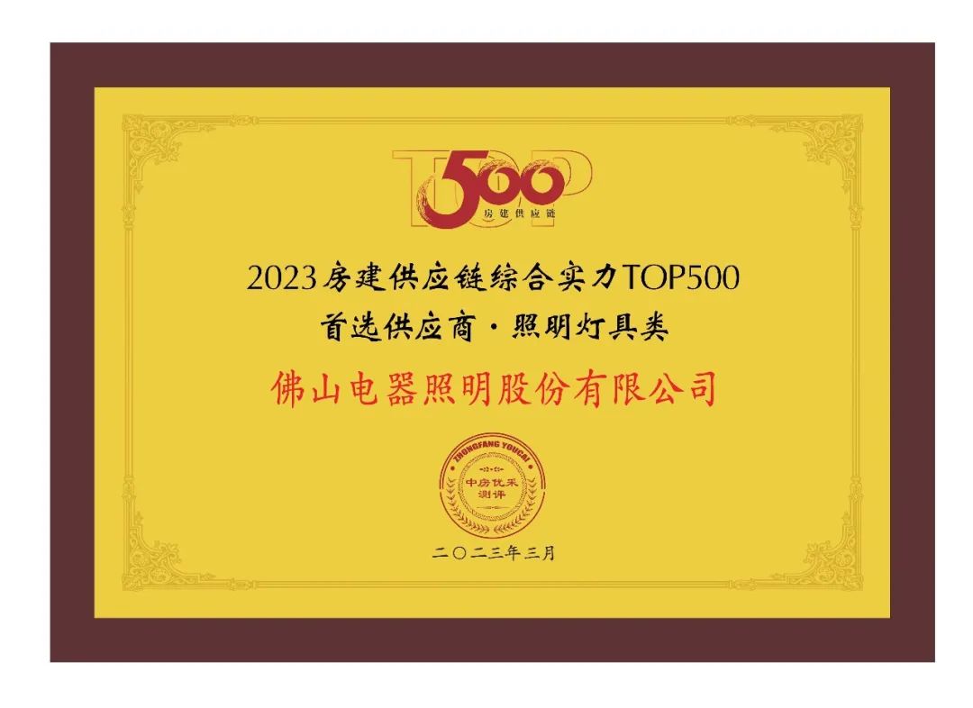 近日,备受关注的《2023中国房地产开发企业综合实力TOP500测评研究报告》正式发布,龙8国际-long8唯一官网凭借企业综合实力,再次入选2023年房建供应链综合实力TOP500首选供应商·照明灯具类企业。