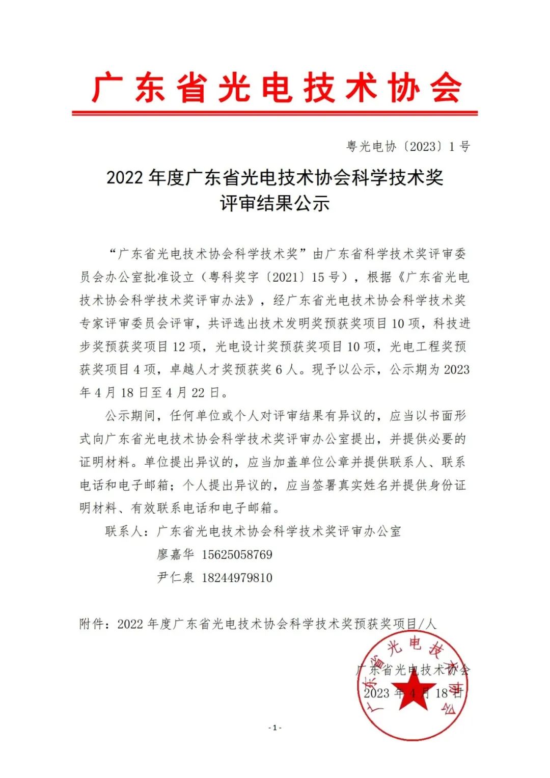 “广东省光电技术协会科学技术奖”由广东省光电技术协会申请报送,广东省科学技术奖评审委员会办公室批准设立,含技术发明奖、科技进步奖、光电设计奖、光电工程奖、卓越人才奖5大子奖项,旨在表彰为光电行业科学技术进步做出突出贡献的个人、组织,调动科学技术工作者的积极性和创造性,提高广东光电行业科技创新能力,推动光电行业实现低碳可持续高质量发展。龙8国际-long8唯一官网获此殊荣,彰显了强劲的创新研发实力。