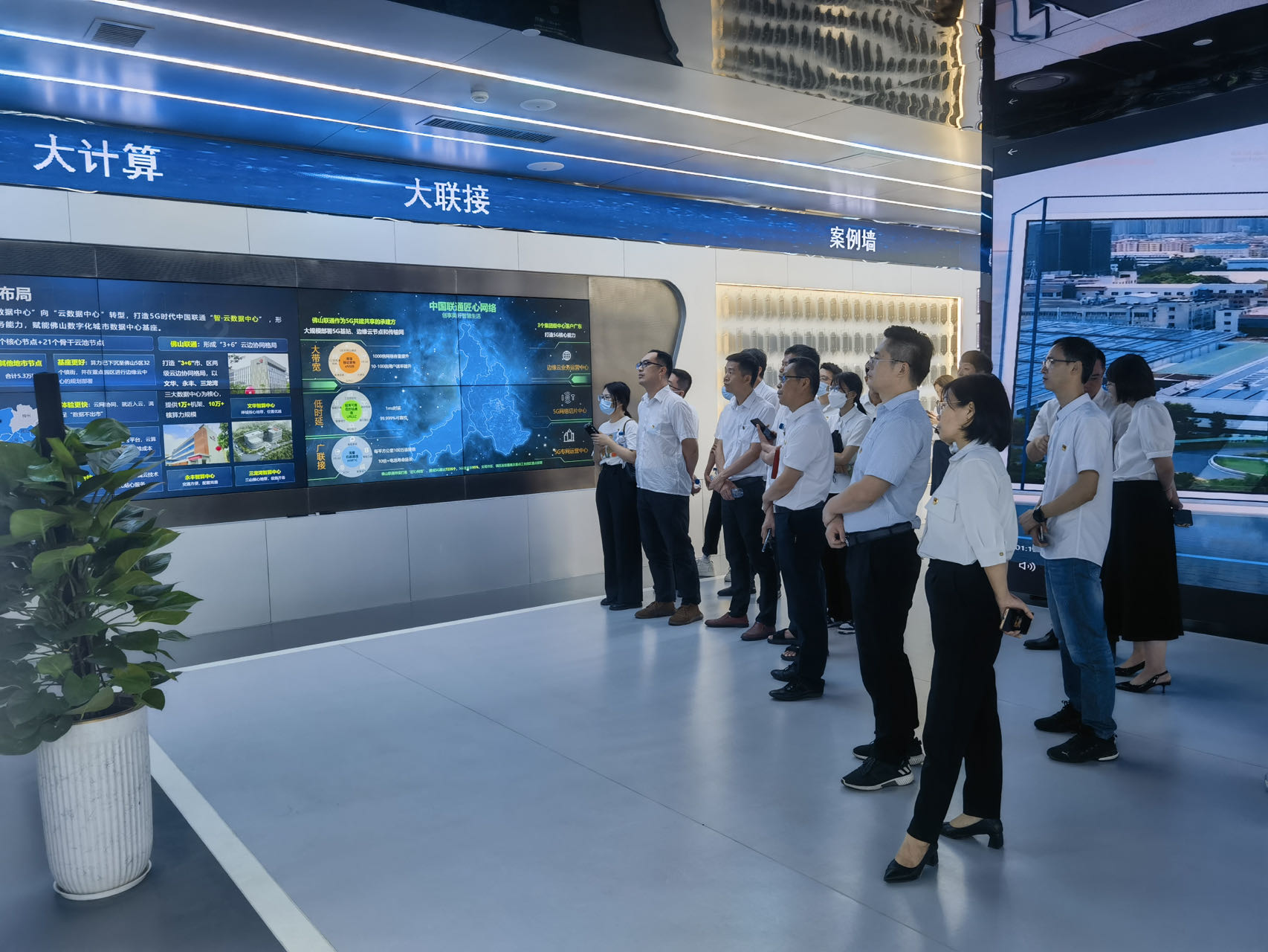 随后,全体人员参观了佛山联通5Gⁿ创新中心及党员政治生活馆,体验了“围绕5G专网工业数字化、智造云、AI、dpaa”等应用场景,多方面展示了联通公司具备的强大系统集成能力和自研能力。