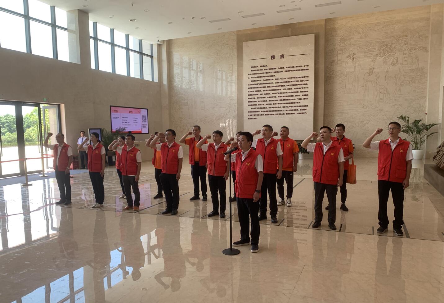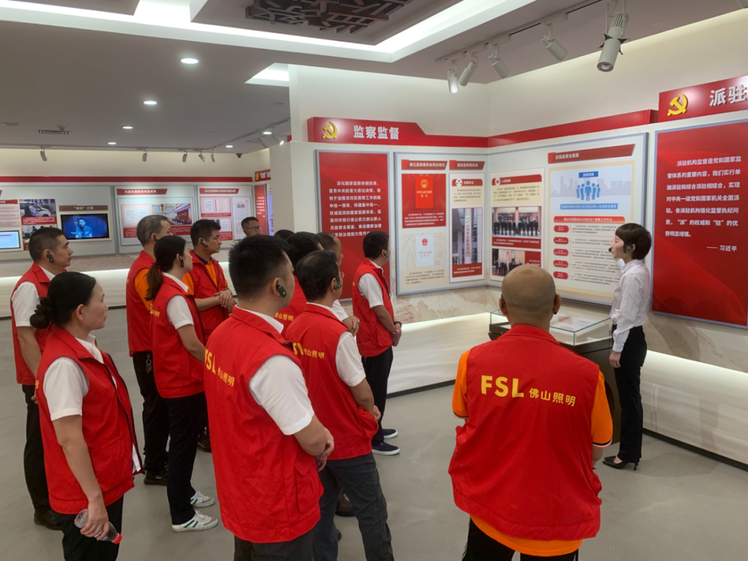 在讲解员的带领下,党员逐一参观了佛山纪法教育基地五个展厅,通过沉浸式、全景式、参与式的教育体验,对党风廉政建设及反腐败工作有了更清醒的认识和更深刻的思考。随后,全体党员面对鲜红的党旗,庄严肃立、举起右手,重温入党誓词,铭记入党初心,接受党性洗礼。