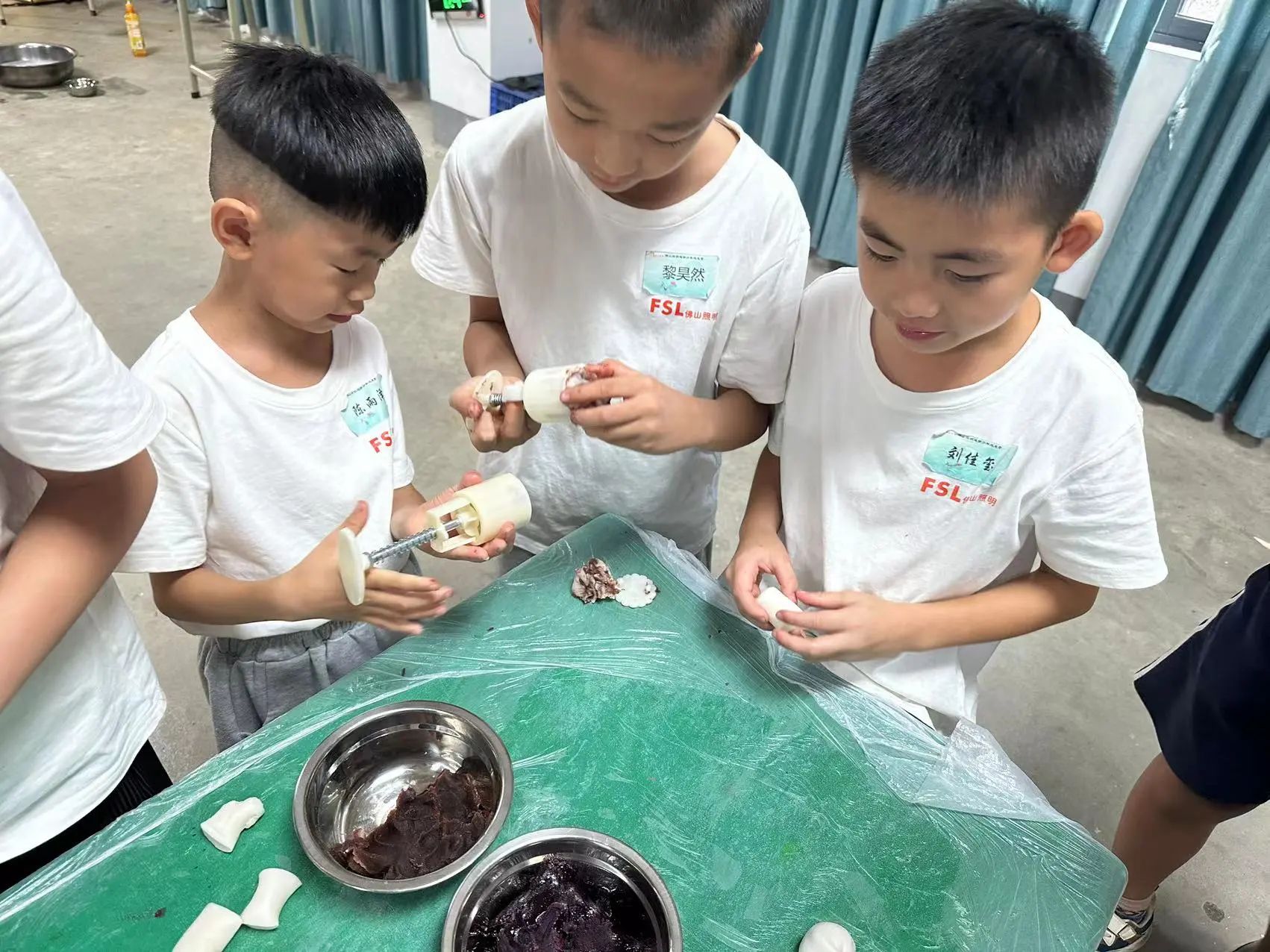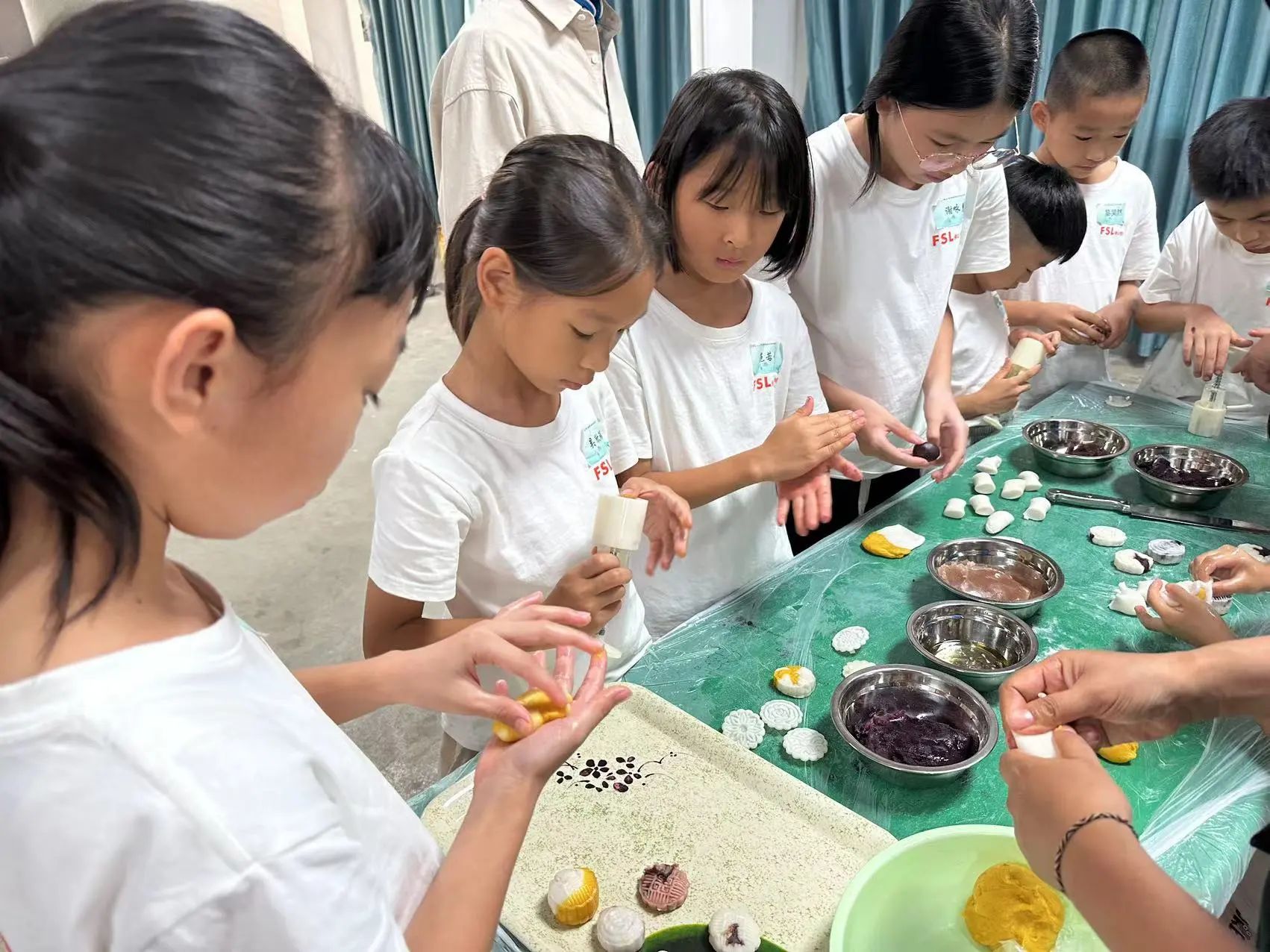 在老师的指导下,孩子们一起动手制作冰皮月饼。大家纷纷化身糕点师,从准备饼皮、包馅料到按压成型的工艺流程中感受中华传统文化。随后,孩子们将月饼纷纷送给遇到的人,在一声声的“谢谢”中感受到分享与给予的快乐,从实际行动中学会感恩。