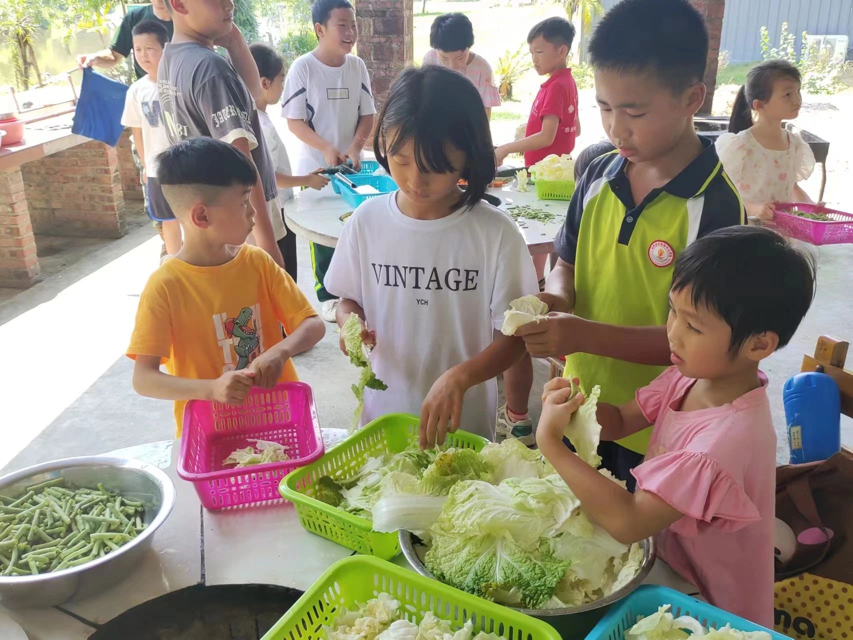 在水镇露营基地,孩子们一起动手做午饭,大家分工合作,洗菜、切菜、炒菜、摆盘,让不少新手“厨师”切身感受有趣的初次下厨体验。最后,孩子们围坐在一起,品尝着自己动手做的饭菜,感到格外的美味。集体烹饪活动让孩子们提高动手及解决问题的能力,培养协作交流的团队意识,同时体会到“劳动光荣”的精神,感受到父母做饭的辛劳。