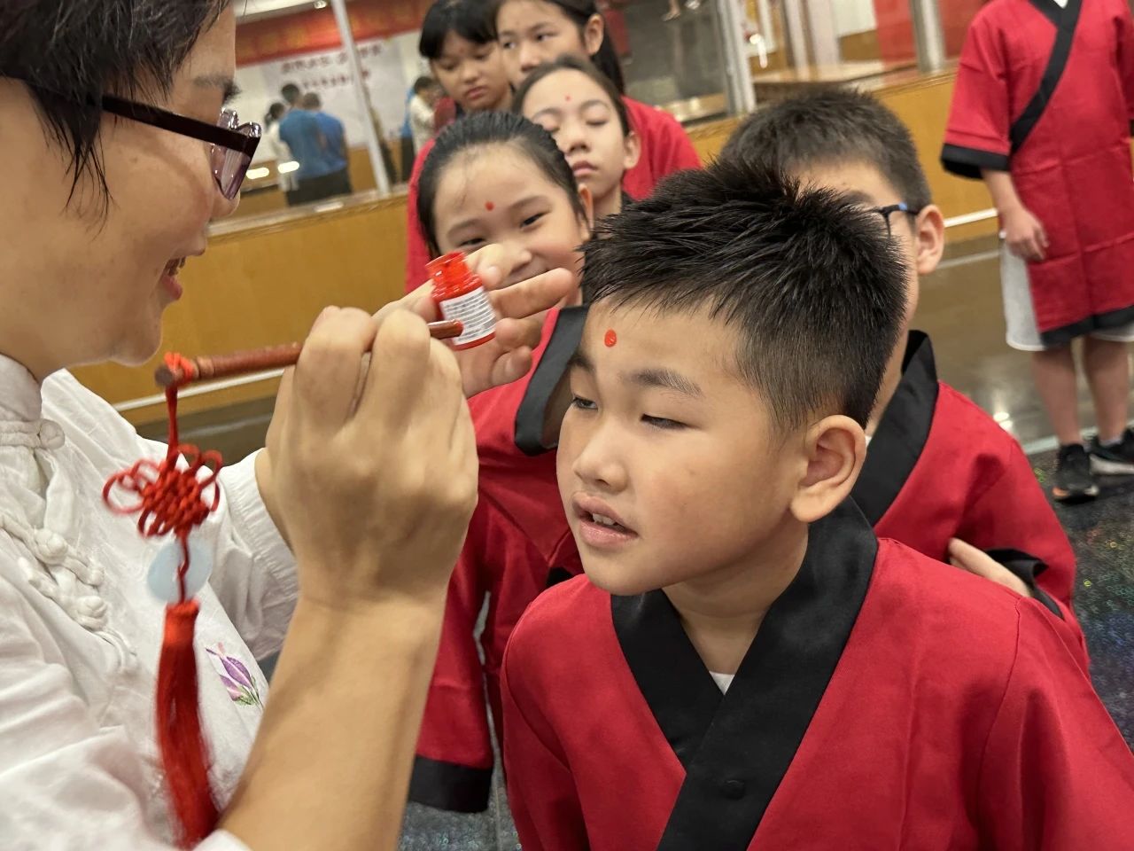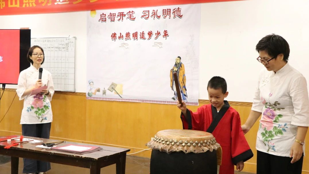 开笔礼是人生第一礼。孩子们通过正衣冠、敬先师、朱砂启智、击鼓明志、开笔启蒙等环节,立志成为善良、智慧、勤奋的孩子。