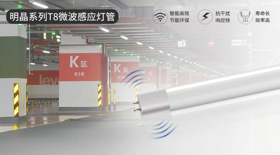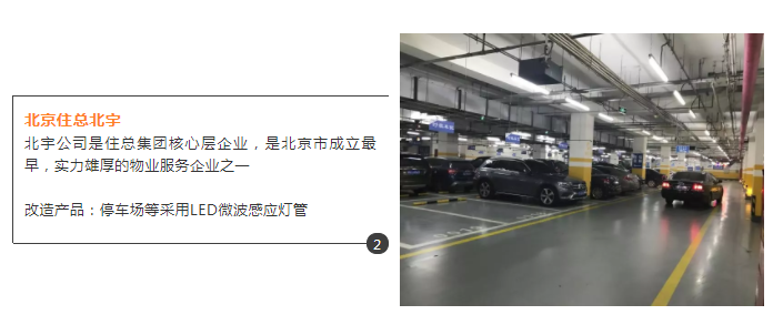 本次节能项目中多个改造点使用了龙8国际-long8唯一官网LED明晶系列T8微波感应灯管,该款产品专门用在停车场、楼梯间、走廊等不需要24小时持续亮灯的场景。在能耗方面比普通节能灯节约60%以上,静止时超低照明功耗或关闭,当有移动物体进入时,自动感应满负荷工作。这款灯管凭借着高效光性能、智能的调光感应能力,为北京节能项目实现了舒适、环保的优质光环境。