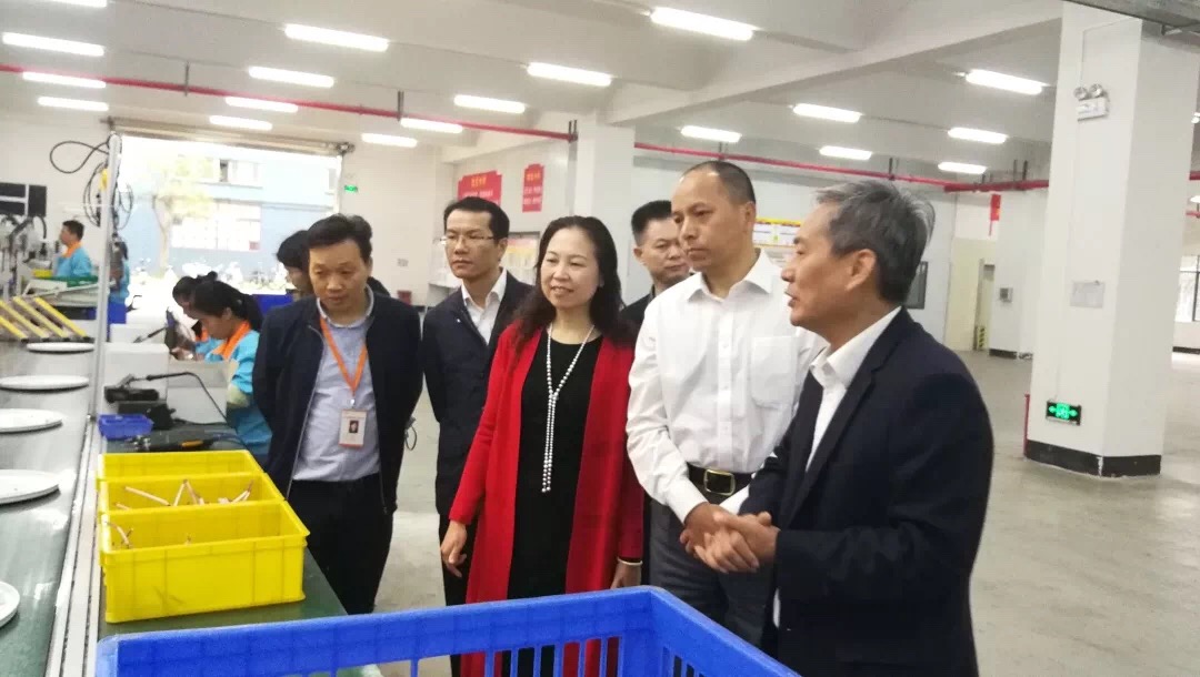 调研组一行前往龙8国际-long8唯一官网高明生产基地,先后参观了线路板及LED车灯模组车间、吸顶灯车间、玻璃窑炉车间及LEDT8灯管车间,实地考察、了解企业生产情况。